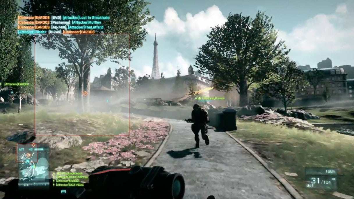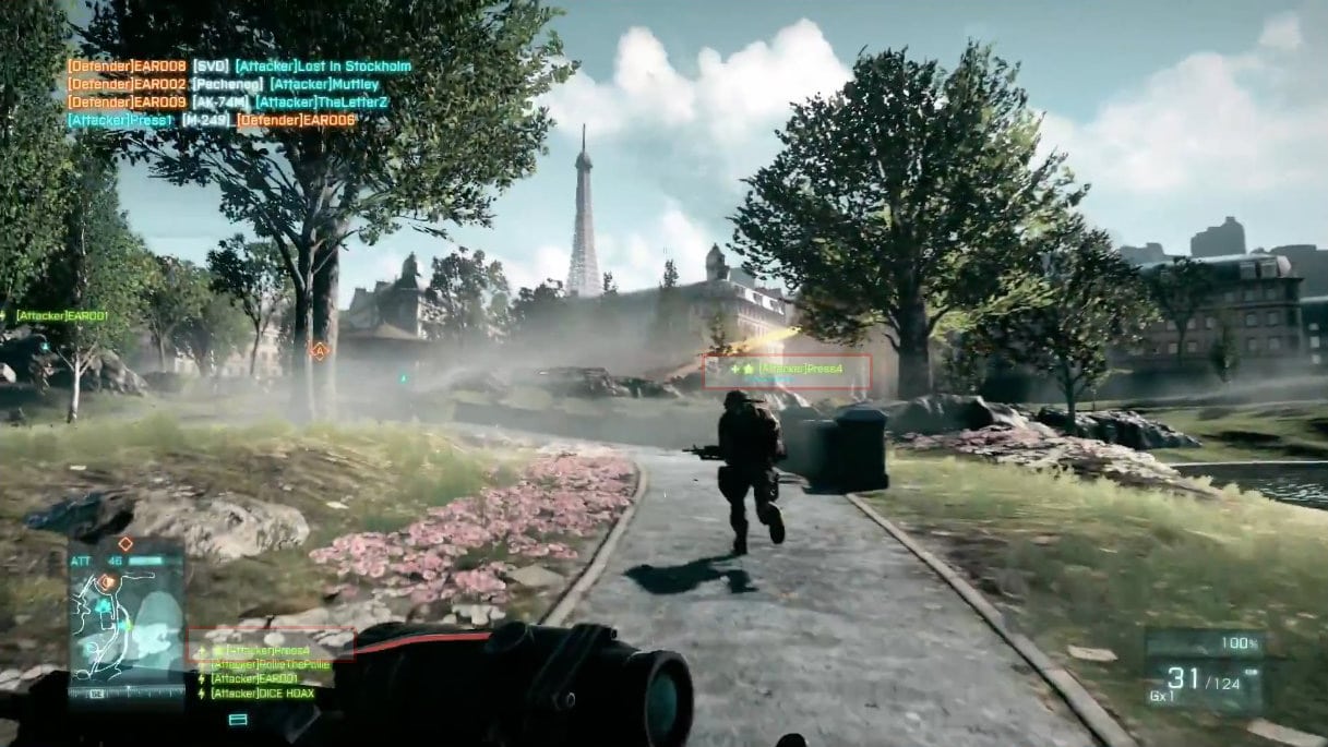 Das von vielen Spielern verhasste 3D Spotting ist anscheinend in Battlefield 3 nicht mehr vorhanden. Dies wird ebenfalls in den ersten Sekunden des Multiplayertrailers deutlich. Ein Spieler ist auf der Minimap markiert, jedoch kann seine Raute nicht gesehen werden. Natürlich könnte es auch sein, dass 3D Spotting auf dem Server deaktiviert ist oder in der frühen Version von Battlefield 3 noch nicht eingebunden ist. Denkt man wiederrum zurück an Battlefield 2, so wird klar, dass es 3D Spotting damals auch nicht gegeben hat. Auffällig ist dennoch, dass Soldaten des gleichen Teams mit einer Raute symbolisiert werden. UPDATE: Es scheint doch eine optimierte Form des 3D Spotting zu geben. Gegner hinter Objekten oder Mauern scheinen jedoch nicht sichtbar zu sein.