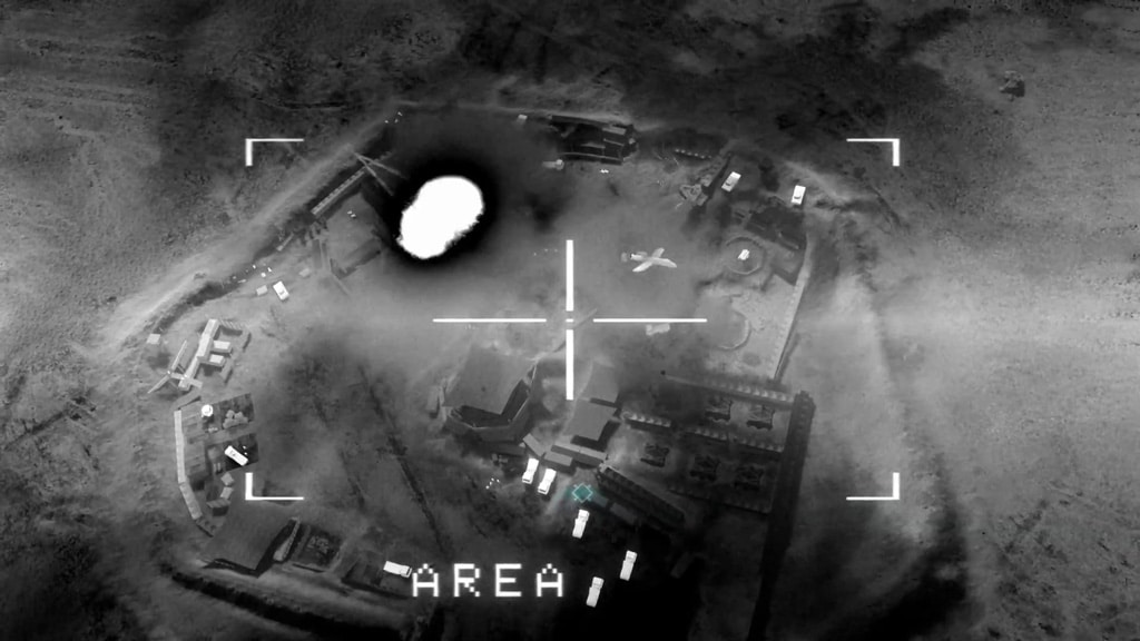 Zum Ende der Mission kann der Fahrer des Panzers eine Luftaufklärung anfordern. Das Nebengeräusch während der Aufklärung kommt uns bekannt vor und lässt auf ein UAV zurückschließen. Interessant jedoch ist ,dass das UAV keine einzelne Rakete abfeuert, sonderen gewaltige Bomber anfordert, welche die feindliche Basis in Schutt und Asche legen.