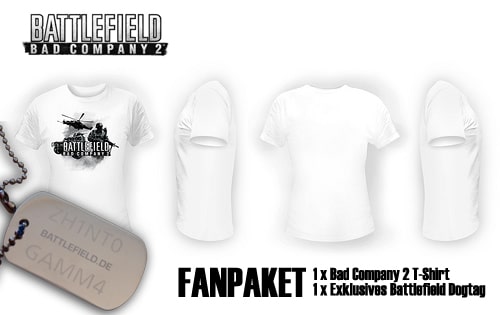 Während die Redaktion umgezogen ist haben sich einige Sachen gefunden. Wir verlosen daher im Rahmen der Fragesammlung ein Battlefield Fanpaket bestehend aus einen T-Shirt und einem seltenen Dogtag (abb. Ähnlich) sowie weiterer nette Überraschungen die natürlich noch nicht verraten werden.