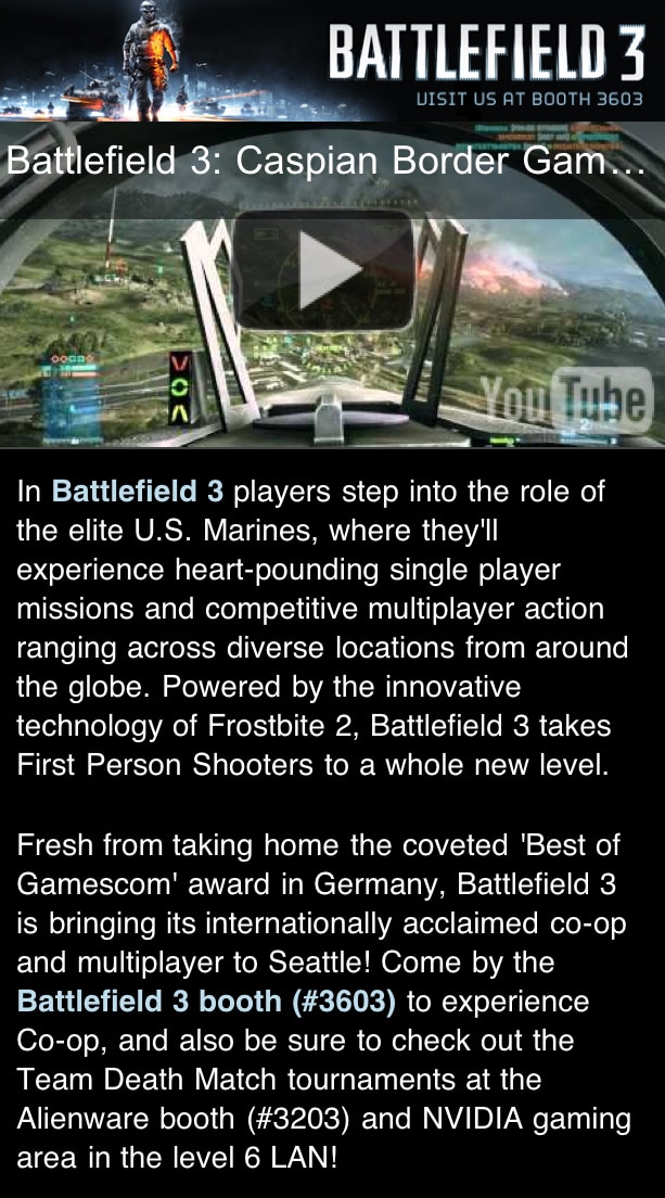Ab dem 26. August 2011 geht der Hype weiter, denn dann wird Battlefield 3 in Seattle (USA) auf der PAX (Penny Arcade Expo) vorgestellt. Battlefield Fans werden gleich an drei Ständen Battlefield 3 anspielen können. In der Mainbooth wird es wie schon auf der Gamescom 2011 die Karte Caspian Border im Conquest-Modus zum anspielen geben. Bei NVIDIA und Alienware werden Battlefield Fans für ihr warten mit dem Team Deathmatch Modus auf der bekannten Karte Operation Metró belohnt.