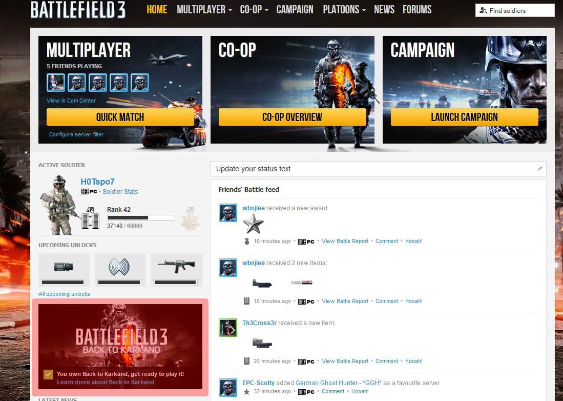 Solltest du dir nicht sicher sein, ob du Back to Karkand gratis erhältst, solltest du im Battlelog einen Blick auf die Back to Karkand Grafik auf der rechten Seite werfen, denn wenn dort nicht “You own Back to Karkand, get ready to play it!“, steht, wirst to Back to Karkand nicht umsonst erhalten.