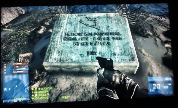 Die Eastereggs zu Battlefield 3 sollten mittlerweile jedem bekannt sein. Ob es die Sandburg auf Operation Metro ist oder die diversen anderen Eastereggs, die quer über die ganze Karte von DICE verteilt wurden. Weniger bekannt sollten euch jedoch die Eastereggs sein, welche mit dem Battlefield 3 Erweiterungspack “Back to Karkand” veröffentlicht werden. Denn auf Wake Island ist sowohl ein Spielzeug Dinosaurier als auch eine Danksagung von DICE an alle Spieler von BF 1942, BF 2, BF2142 und BF1943 zu finden.
