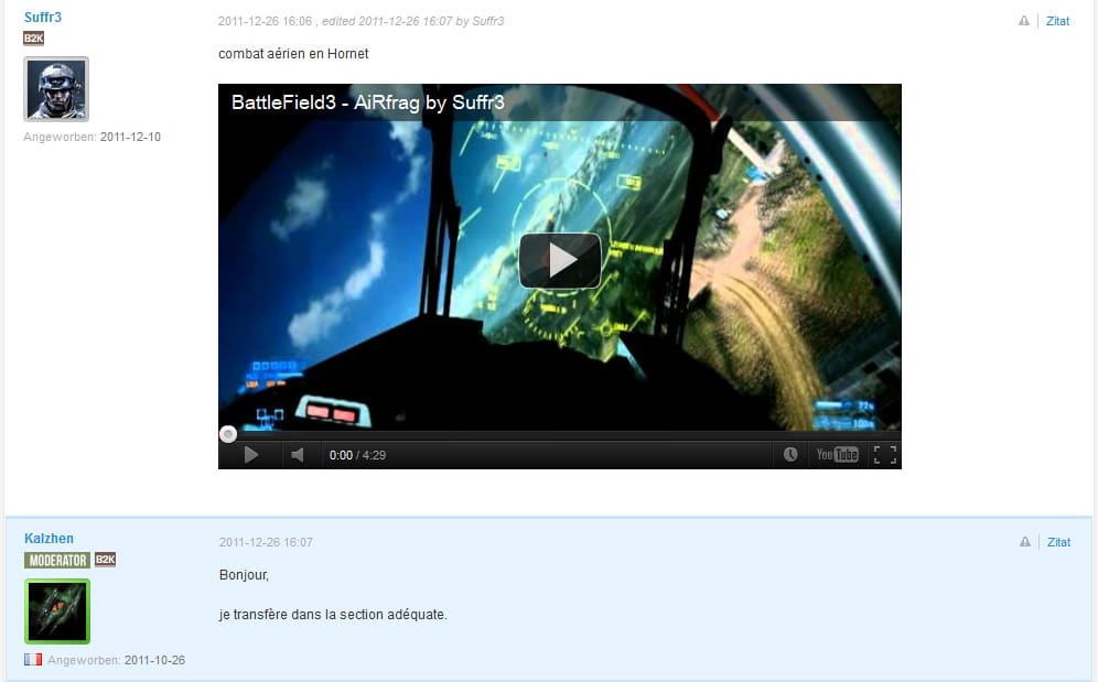 Im Battlelog stellt sich das Problem dar, dass Videos im Forum, im Platoon oder im eigenen Profil nur per Link dargestellt werden müssen und das Video nur über Youtube selbst abgespielt werden kann. Mit Better Battlelog wird mit dem entsprechenden Code das Video automatisch eingebettet und kann daher direkt im Battlelog abgespielt werden. |