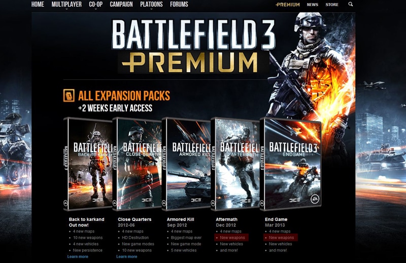 Ein aktiver Nutzer unserer Community hat uns darauf aufmerksam gemacht, dass auf der Battlelog Premium Seite kürzlich die Daten zu den Erweiterungen Aftermath und Endgame geändert worden sind und in beiden DLCs neuen Waffen mit im Umfang sein werden. Außerdem werden beide DLCs neue Fahrzeuge sowie vier neue Karten besitzen.
