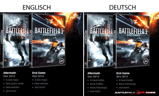 Vor wenigen Tagen berichteten wir über die Verwirrung, die momentan um die kommenden Battlefield 3 DLCs “Aftermath” und “End Game” herrscht. Nachdem angekündigt wurde, dass mit beiden Erweiterungen neue Waffen geliefert werden, wurde die Beschreibung seitens EA kurzer Hand auf der englischen Battlelogplattform wieder geändert.