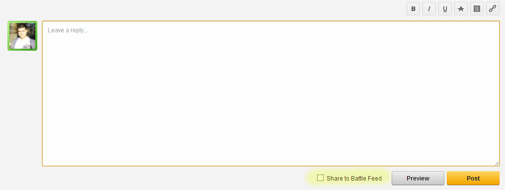 • battlelog-update-14-03-2013Neues Feature: Es wurde eine Funktion im Battlelog Forum hinzugefügt, die es die Nutzer nun erlaubt selbst zu entscheiden ob der verfasste Beitrag auf dem Battle Feed angezeigt wird oder nicht. Dies soll den Feed entlasten und übersichtlicher machen.