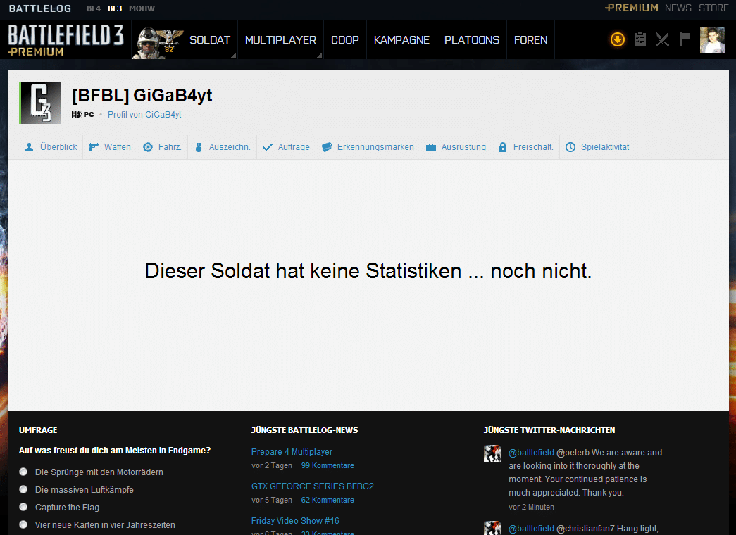 Startseite | Foren | Statistik-Reset während der BF3 Wartungsarbeiten für viele PC-Spieler