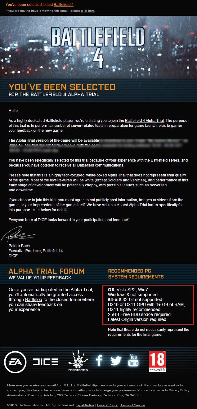 You have been specifically selected for this trial because of your experience with the Battlefield series, and because you have opted-in to receive all Battlefield communications.