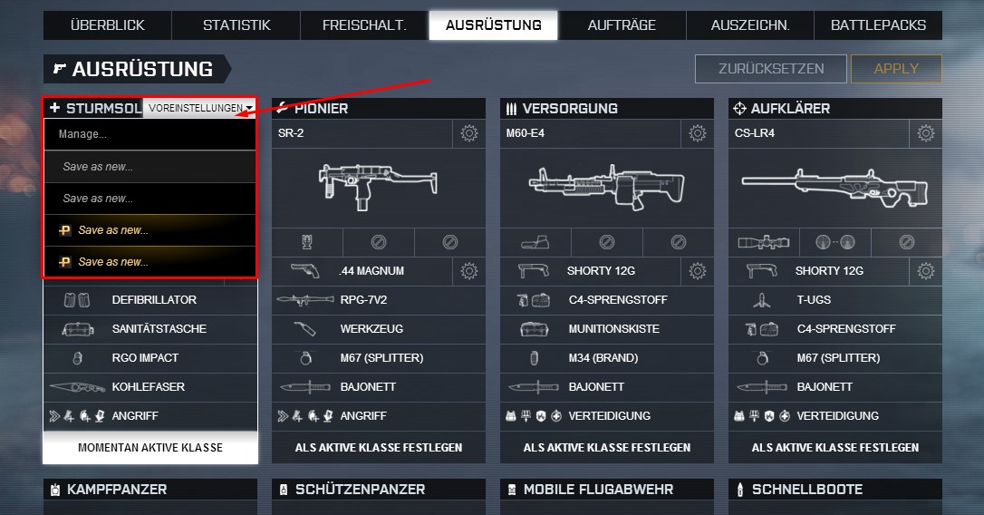 Die Loadout-Presets werden über Battlelog erstellt und können per Second Screen, App oder Tablet aktiviert werden. Das lästige Ausrüsten im Spiel selbst bleibt immerhin erspart. Einziger Währmutstropfen: Im Spiel kann man die Loadout-Presets nicht aktivieren. Eventuell kommt eine solche Änderung mit den nächsten Patches. Sinnvoll wäre es.