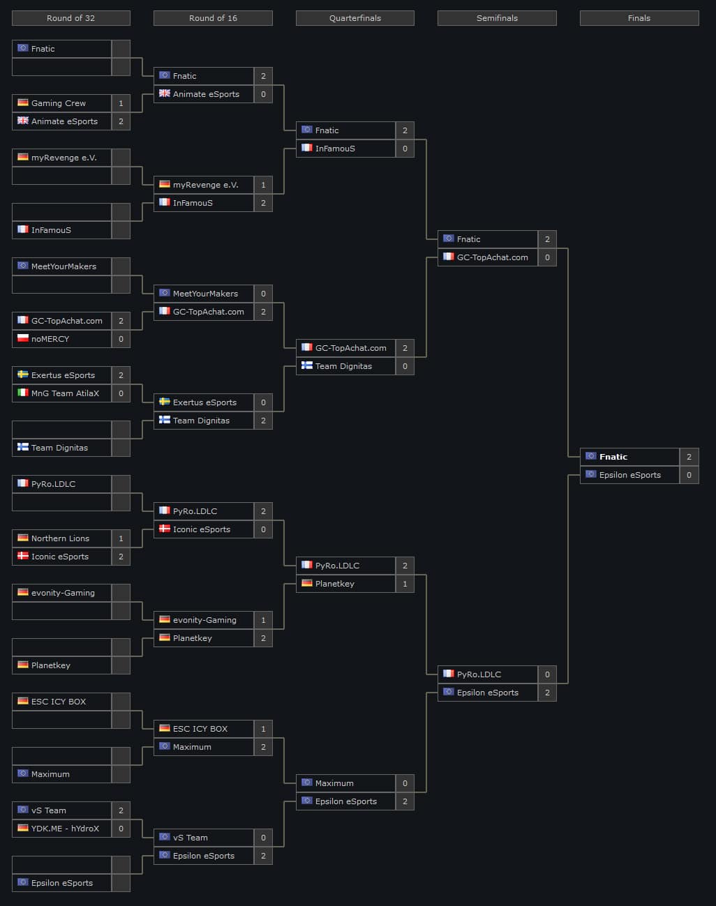 Den absoluten Wow-Effekt lieferte das Team GC-TopAchat.com, die sich gegen die Teams MeetYourMakers und Dignitas mit einem Ergebnis von jeweils 2:0 bis in die Semifinals durchschlagen konnten. So musste sich das französische Team jedoch gegen das Siegerteam der letzten Season Fnatic geschlagen geben, die sich weiterhin in Top-Form befinden und den Sieg des ersten Cups nach Hause bringen konnten.