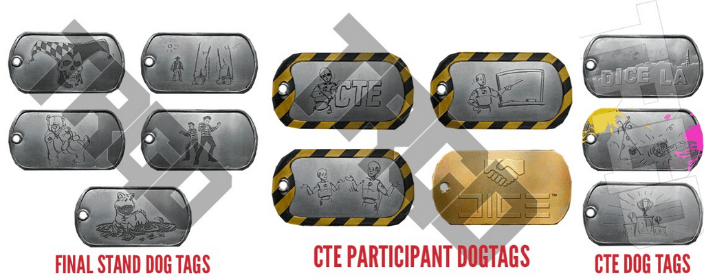 Neben drei verschiedenen DogTags für die Teilnahme der Tests im Rahmen des Community Test Environments, gibt es aber auch Hinweise auf die fünf neuen Final Stand DogTags als auch auf ein DICE Fried DogTag, welches in der Regel Spieler tragen, die sich in der Community besonders hervorheben und beispielsweise täglich etwas rund um Battlefield machen. Das können Youtube-Videos sein, Blogs wie wir oder aber auch andere, die einfach omnipresent in der Battlefield Community sind.