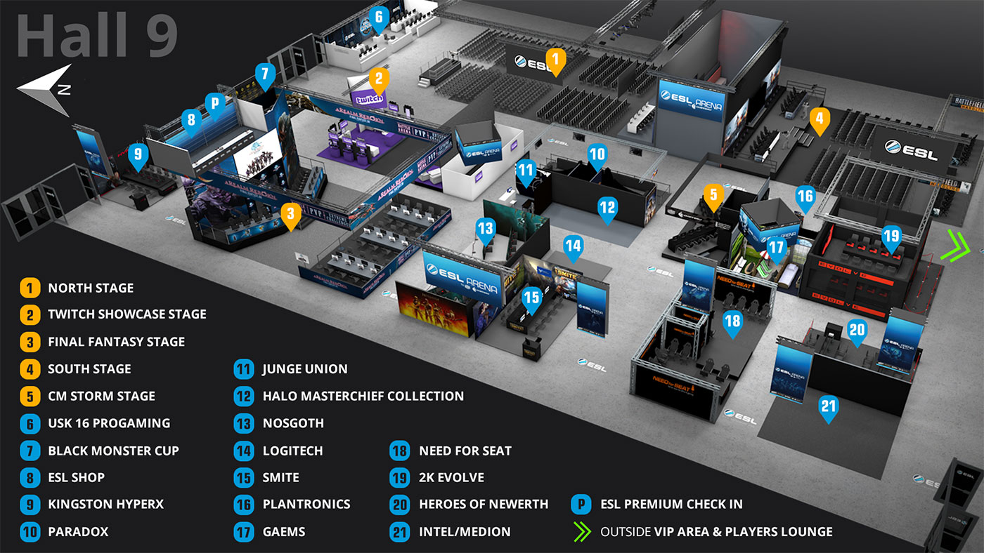 Die Electronic Sports League findet ihr in Halle 9 auf 4.000qm in der ESL Arena. Neben den Battlefield 4 ESL One Finals werden unter anderem die ESL Pro Series FIFA 14 and StarCraft II Summer Finals, die ESL One Counter-Strike: Global Offensive Finals und die Dr Pepper Allstar Tournament Finals zu sehen sowie diverse Demos und Spiele, wie zum Beispiel auch Battlefield Hardline, zu spielen sein.