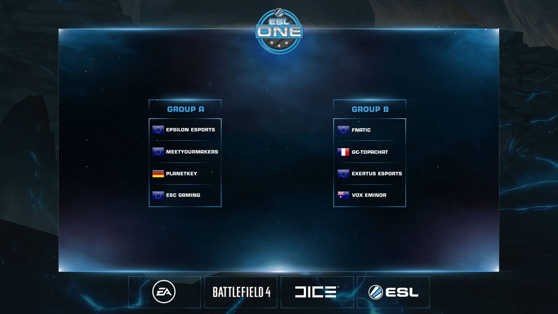 Die Auslosung der Gruppen und der ersten Begegnungen wurden seitens der ESL vorgenommen und bekanntgegeben. Wie bisher wird in einem Double Elimination Modus gespielt. Das heisst, dass es ein Upper und ein Lower Bracket geben wird, so dass ein Team nicht direkt bei der ersten Niederlage ausscheiden wird.