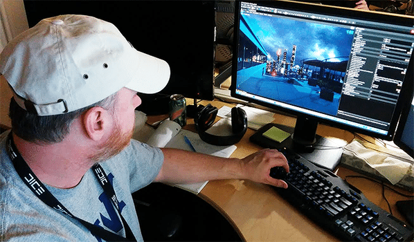 Neben diesen Infos gibt es nun endlich auch mal ein Bild, auf dem ein Entwickler an der Nachumsetzung von Siege of Shanghai arbeitet. Gut zu erkennen ist, dass der Entwicker sich gerade auf dem Dach des zentralen Hochhauses befindet und im Hintergrund die Skyline Shanghais den Horizont erhellt.