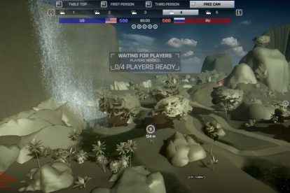Das ist aber auch nich weiter schlimm, denn in einem Scale Test sollt ihr nicht die tolle Landschaft bewundern, sondern Distanzen, Höhenlinien und problematische Map-Bereiche. Sichtlinien, Zerstörung, Fahrzeuge, Details und Co. sind in dieser Phase nicht relevant und werden in der nächsten Phasen überarbeitet.