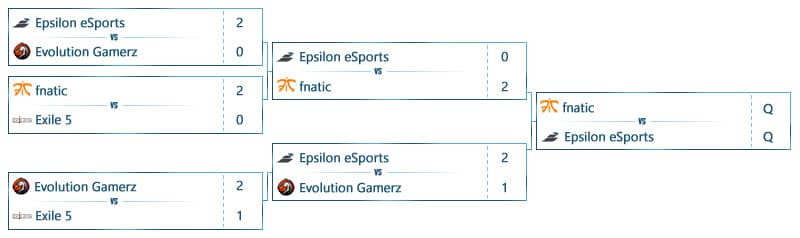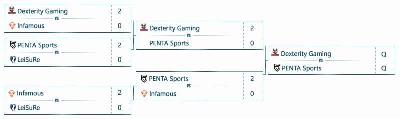 Das Team von PENTA Sports hingegen schaffte es gemeinsam mit Epsilon eSports, Fnatic und dem brasilianischen Team Dexterity Gaming, die sich ebenfalls über einen separaten America Cup qualifiziert haben und bereits in der letzten Season mit ihrem zweiten Platz einen sehr guten Eindruck hinterlassen haben, den Einzug in die Playoffs und damit das Viertelfinale. Die Favoriten der Battlefield 4 ESL One Finals Dexterity Gaming sowie das Team von Fnatic, die bereits vier Siege in Folge eingeholt haben, traten im Finale in einem Best of Five gegeneinander an. Von insgesamt vier gespielten Maps gewann Fnatic vier und sicherte sich damit den fünften Sieg in Folge sowie ein Preisgeld von 12.000 Euro.