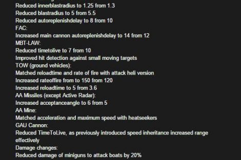 Wirklich bemerkbar sollte die Änderungen der maximalen Flughöhe sein. Der Wert wurde von 1000 auf 550 herabgesenkt, was noch immer sehr hoch sein soll. Auf dem Noshahr Canals Gebiet wurden einige Container neu positioniert, um das Spawncamping zu verhindern. Im Conquest Large Spielmodus wurden Transportfahrzeuge und ein Scout-Helikopter hinzugefügt und die Amtracs entfernt. Die vollen Änderungen findet ihr auf den nachfolgenden Screenshots.