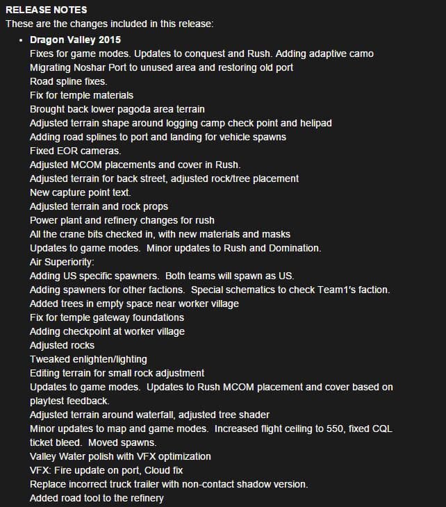 Noch vier Wochen will man sich mit der Umsetzung der Classic Map Dragon Valley beschäftigen. Nicht verwunderlich, dass nun Updatea für Updatea erscheinen. Das letzte Update gab es übrigens erst am vergangenen Freitag. Im heutigen Update hat DICE viele Detailanpassungen und Grafikverbesserungen vorgenommen.