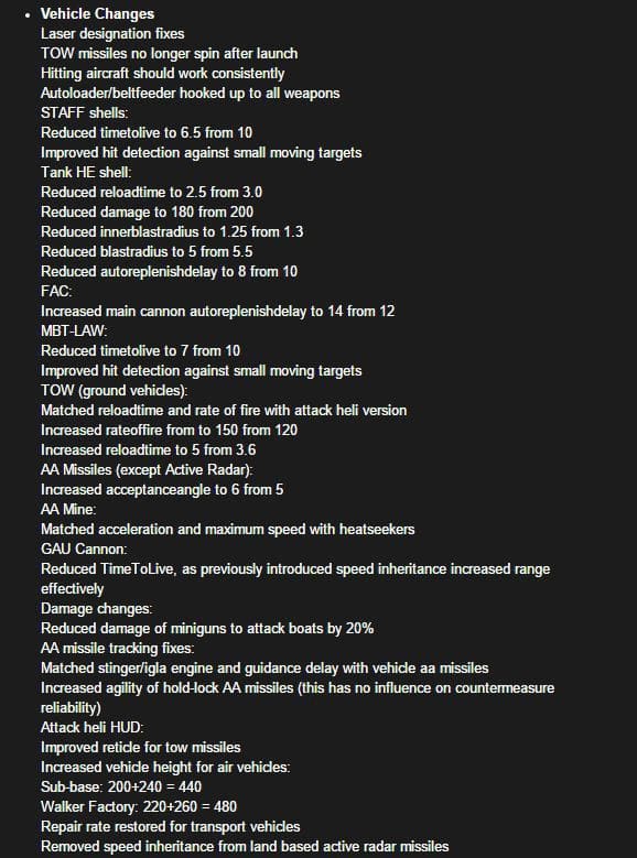 Wirklich bemerkbar sollte die Änderungen der maximalen Flughöhe sein. Der Wert wurde von 1000 auf 550 herabgesenkt, was noch immer sehr hoch sein soll. Auf dem Noshahr Canals Gebiet wurden einige Container neu positioniert, um das Spawncamping zu verhindern. Im Conquest Large Spielmodus wurden Transportfahrzeuge und ein Scout-Helikopter hinzugefügt und die Amtracs entfernt. Die vollen Änderungen findet ihr auf den nachfolgenden Screenshots.