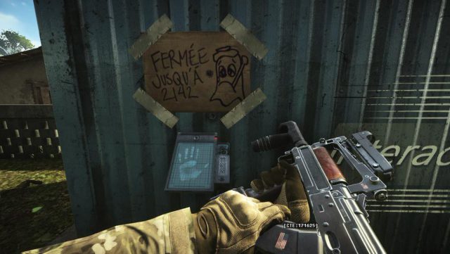 So auch das neuste Easter Egg auf der Battlefield 4 Community Map – Operation Outbreak. Dort wurde nämlich mit einem der letzten Updates ein Schild an jenem Container angebracht, das das Phantom Programm vermutlich weiterführt. Auf Französich steht an diesem Container nun “FERMÉE JUSQU´A 2142”, was auf Deutsch “bis genau 2142 geschlossen sei” heißt.