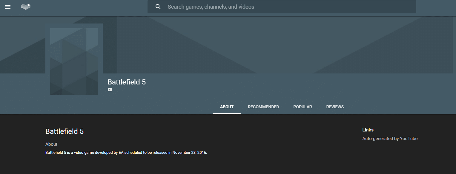 Auf der Gaming-Division Webseite von Youtube tauchte nun aber ein von Youtube automatisch generierter Eintrag auf, der dem kommenden Battlefield den Namen Battlefield 5 verpasst und das Releasedatum auf den 23. November 2016 datiert. Was für dieses Datum spricht ist der November. Sowohl Battlefield 3 als auch Battlefield 4 sind im November erschienen.