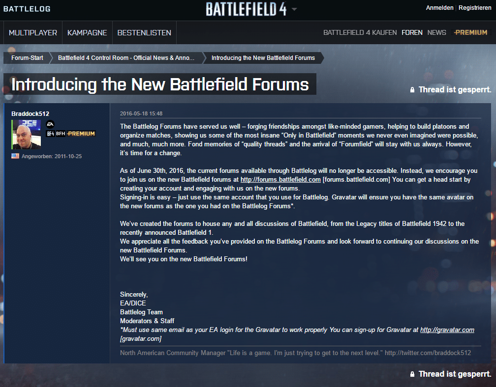 Antwort auf: Das Ende der Battlelog Foren ist nah!