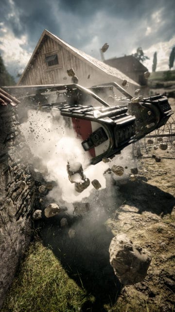 Aus Battlefield Bad Company 2 kennen wir bereits eine umfangreiche Zerstörung, die mit Battlefield 3 und Battlefield 4 dann immer weiter in gescriptete Events verlagert wurde. In Battlefield 1 fallen nun endlich wieder Häuser dynamisch und in verschiedenen Bereichen zusammen. Fenster, Türen und vieles mehr kann mit Micro-Zerstörung zum Vorteil oder auch zum Nachteil werden. Besonders gut hat uns die Veränderung des Bodens gefallen. Sobald hier Granaten, Panzergeschosse, Bomben oder ähnliches explodieren, können die entstandenen Krater als Deckungsmöglichkeit genutzt werden. Da in der Closed Alpha aber noch Clippingfehler existierten, durch die man dann unter Mauern hinweg feuern konnte und man mit Fahrzeugen regelmäßig stecken blieb oder gewisse Bäume einfach unzerstörbar waren, gibt es hier einen Punkteabzug in der B-Note. (Video)