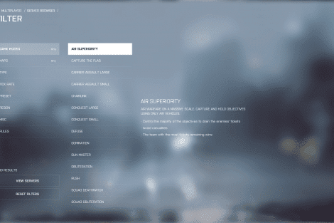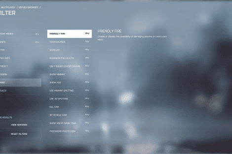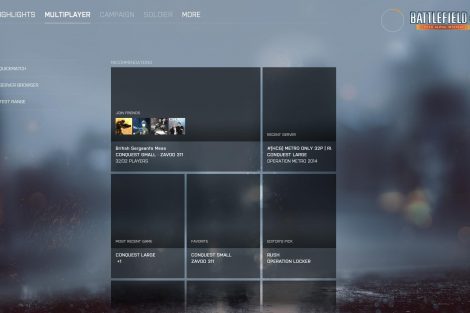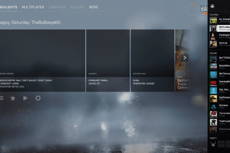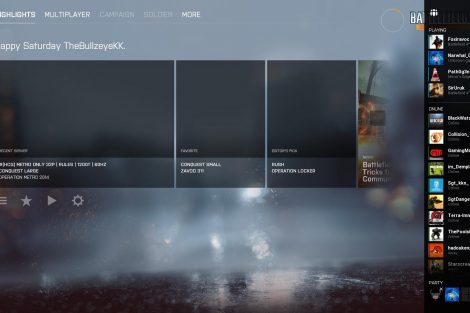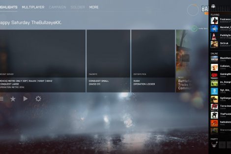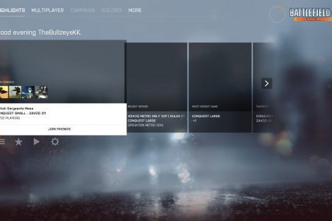 Bis auf ein Forum soll das Interface nachher genau so alle Inhalte wie im Battlelog anbieten. In der aktuellen Version des Battlefield User Interfaces hat man daher schon einen recht weiten Umfang und kann beispielsweise den neuen Serverbrowser nutzen und viele weitere Funktionen, wie das Quickmatch, die News, die Verwaltung der Freunde, Partys erstellen, ein Chat und natürlich die Spieloptionen, wie die Steuerung und Grafikoptionen anpassen.
