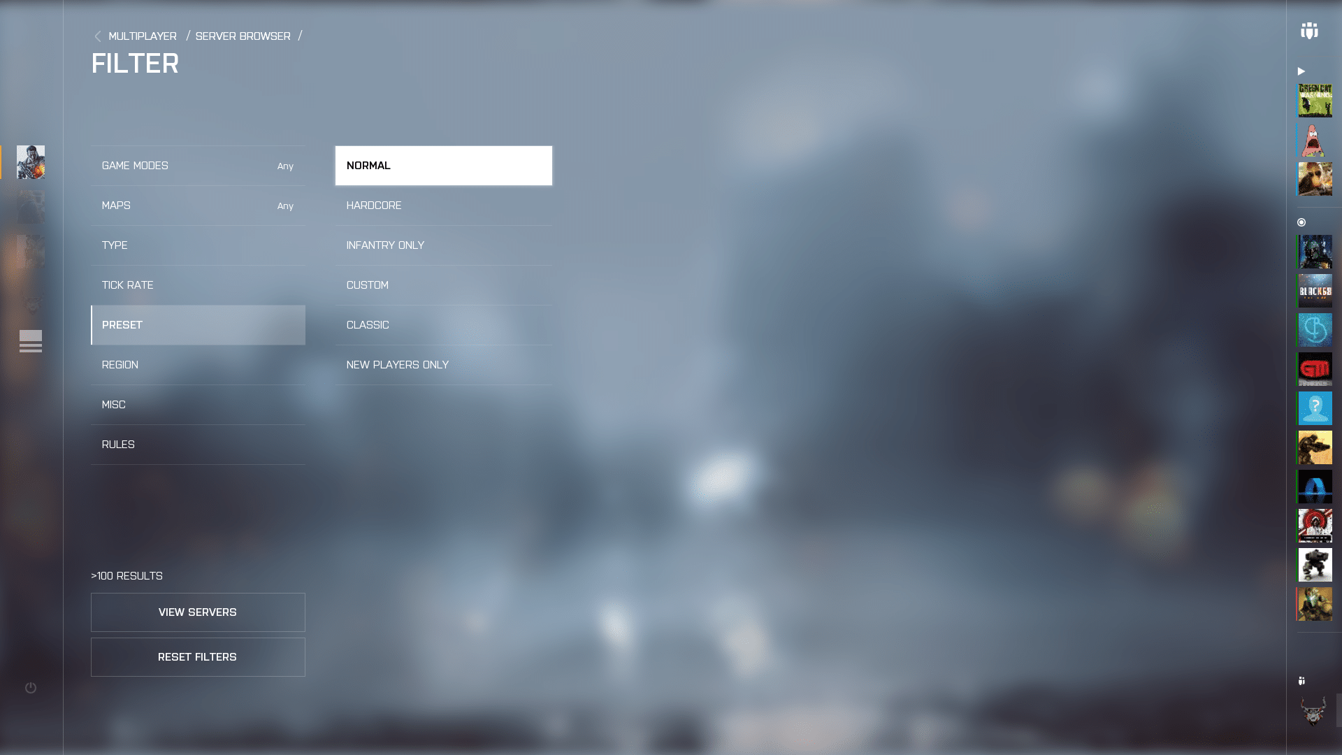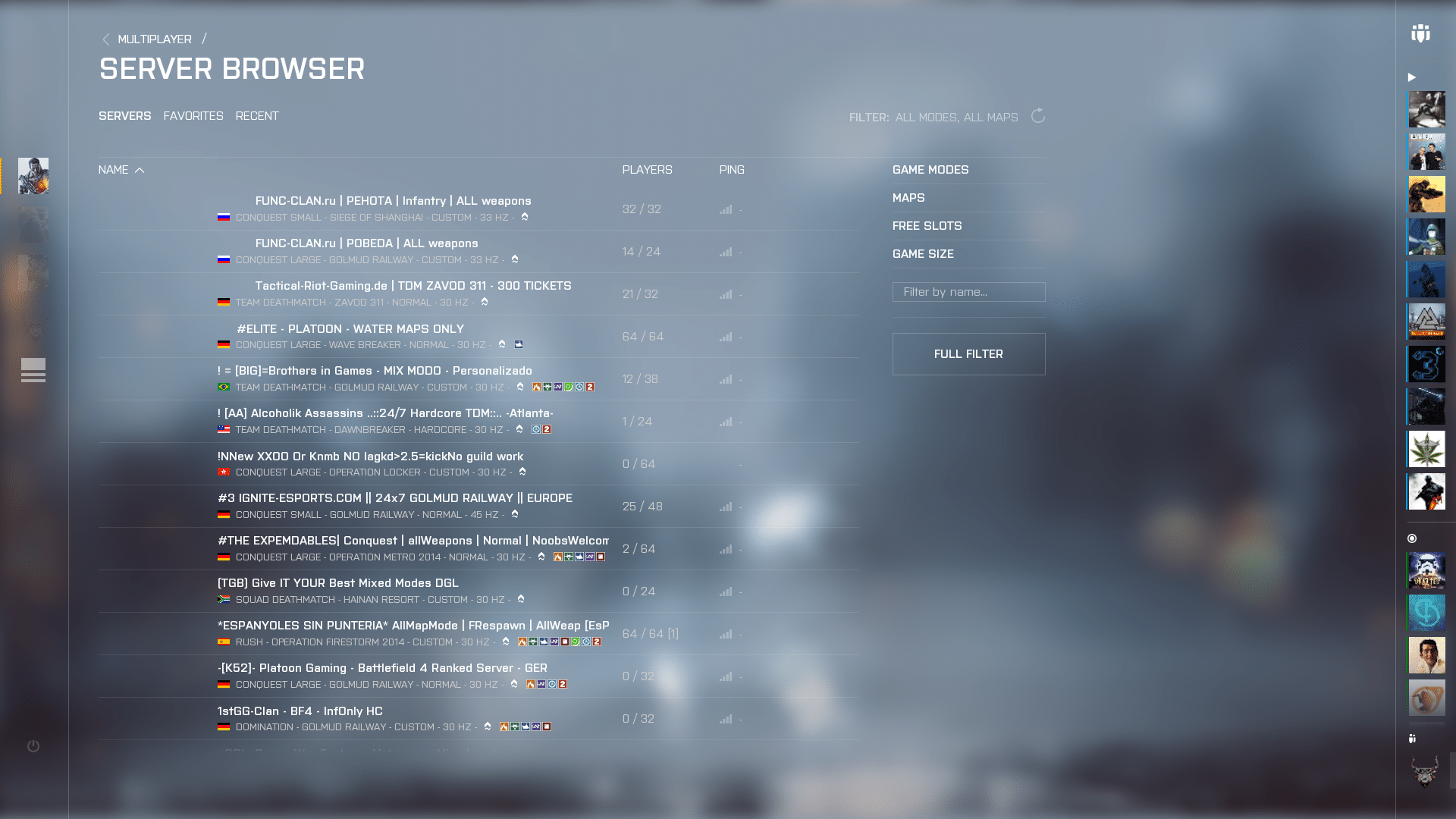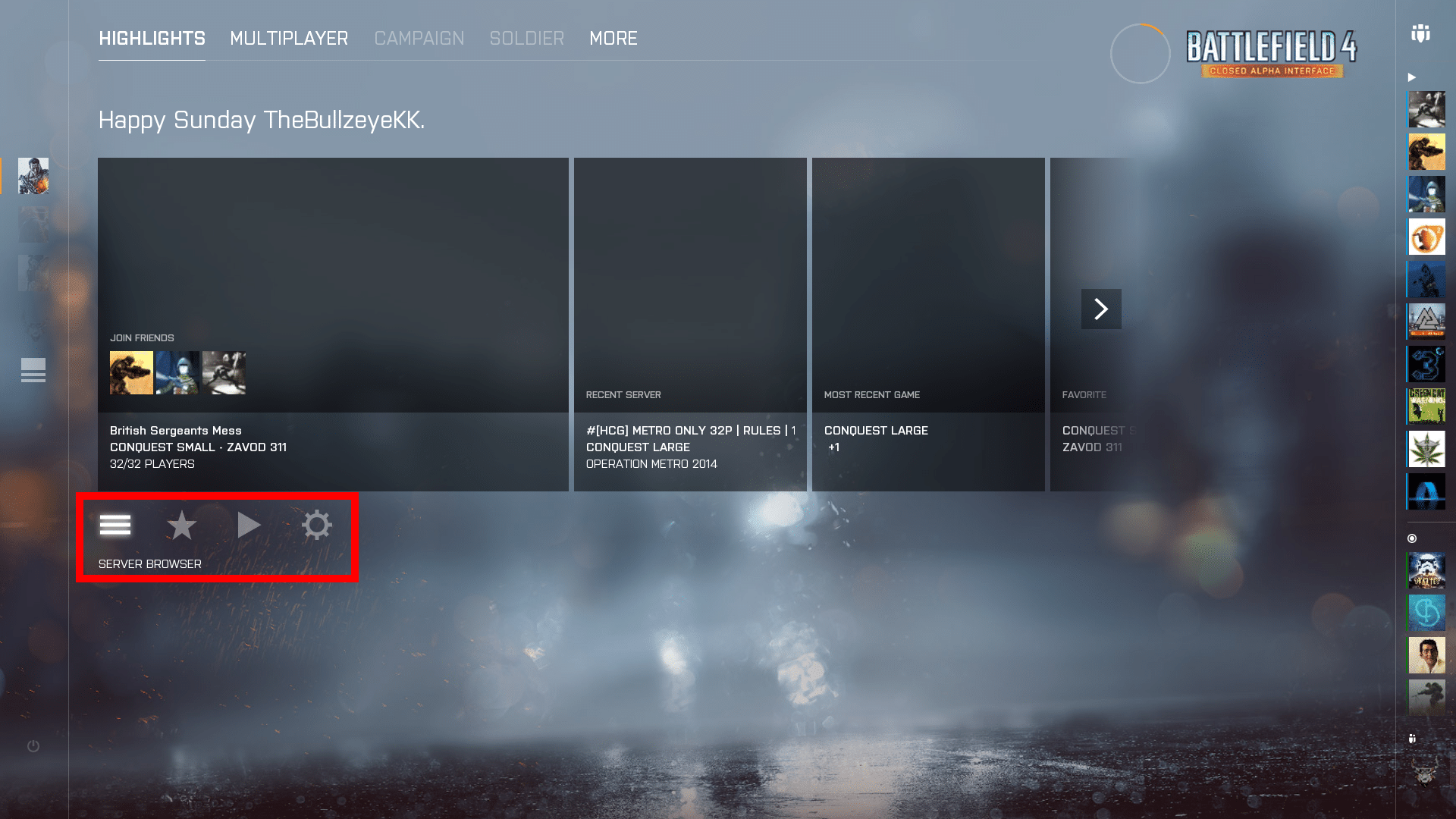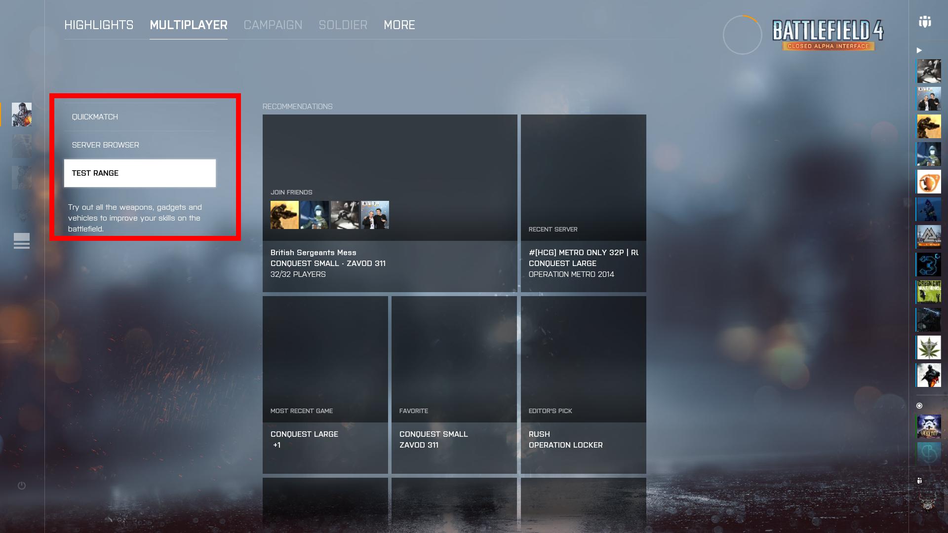 Bis auf ein Forum soll das Interface nachher genau so alle Inhalte wie im Battlelog anbieten. In der aktuellen Version des Battlefield User Interfaces hat man daher schon einen recht weiten Umfang und kann beispielsweise den neuen Serverbrowser nutzen und viele weitere Funktionen, wie das Quickmatch, die News, die Verwaltung der Freunde, Partys erstellen, ein Chat und natürlich die Spieloptionen, wie die Steuerung und Grafikoptionen anpassen.