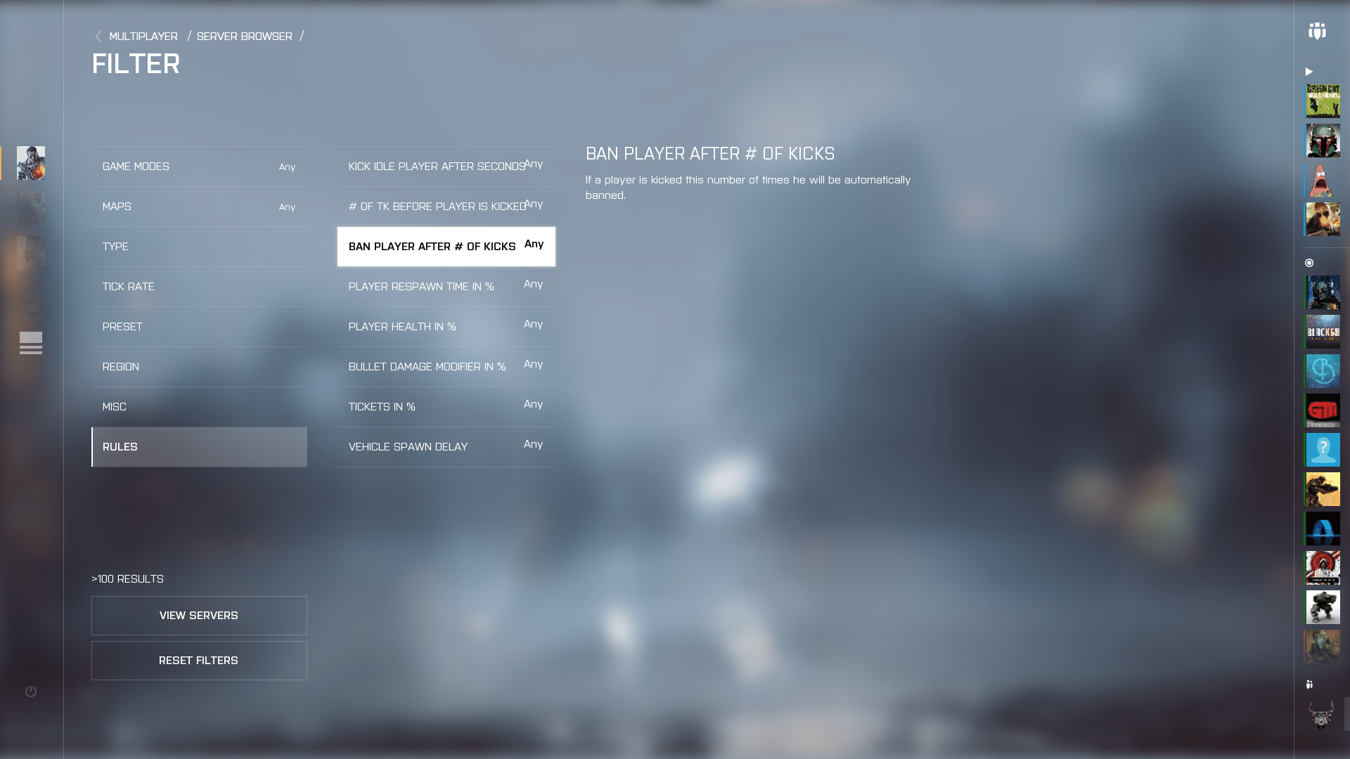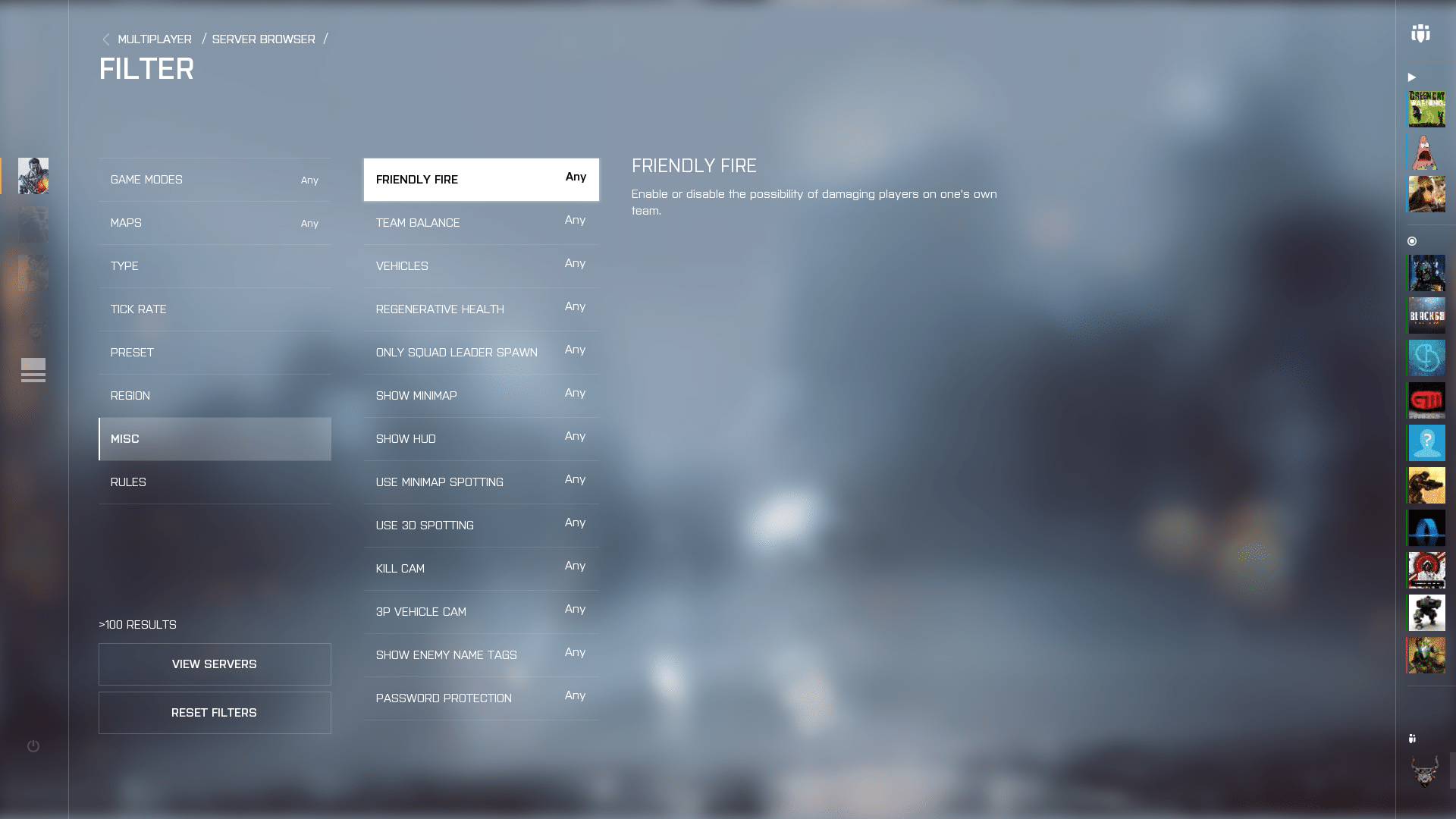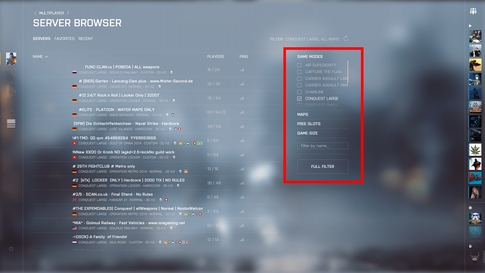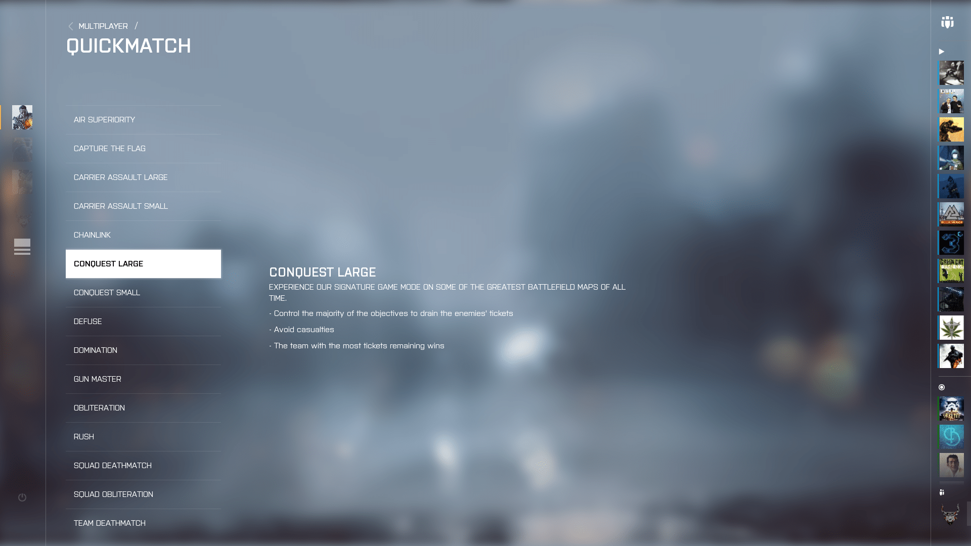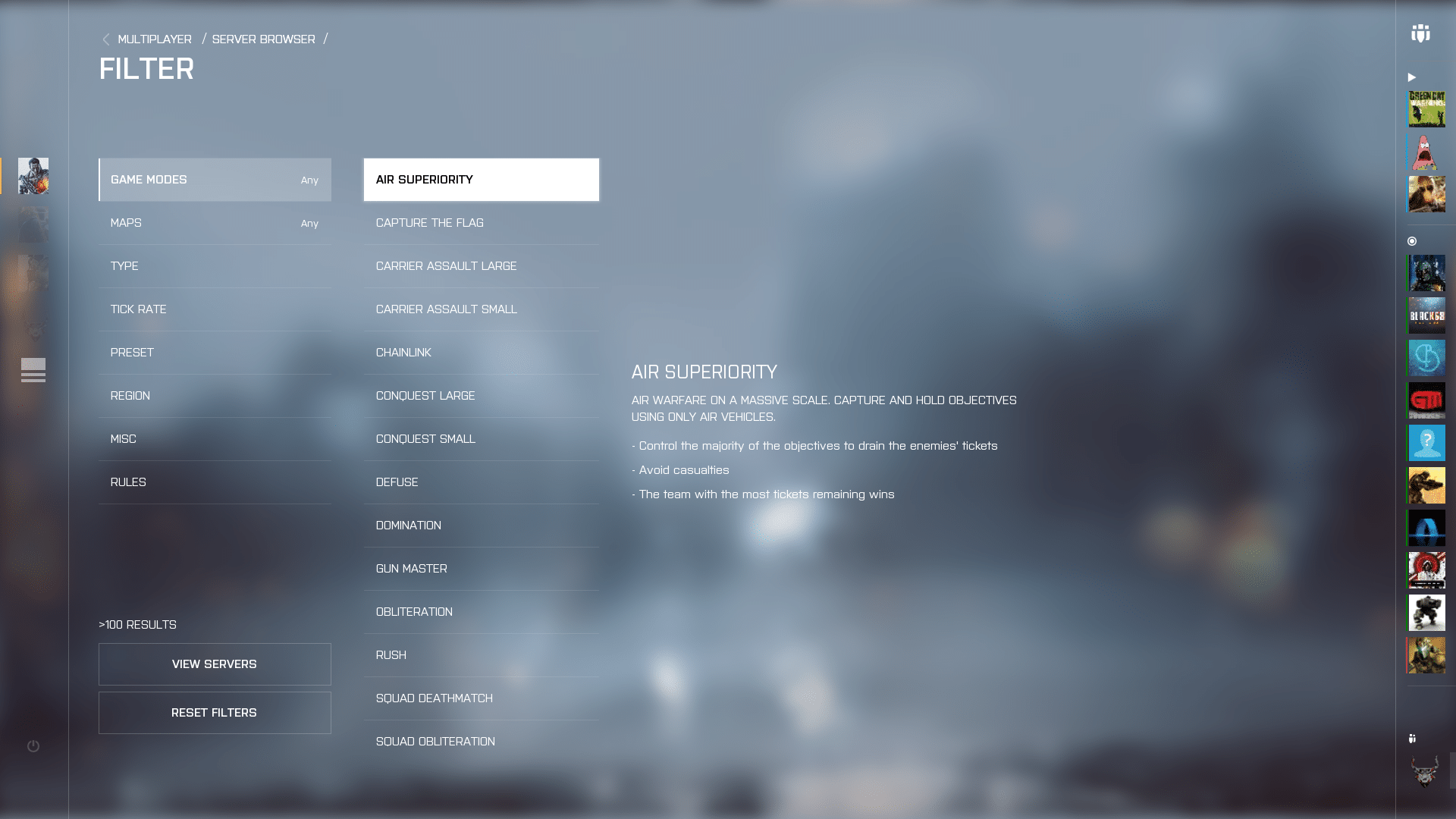 Bis auf ein Forum soll das Interface nachher genau so alle Inhalte wie im Battlelog anbieten. In der aktuellen Version des Battlefield User Interfaces hat man daher schon einen recht weiten Umfang und kann beispielsweise den neuen Serverbrowser nutzen und viele weitere Funktionen, wie das Quickmatch, die News, die Verwaltung der Freunde, Partys erstellen, ein Chat und natürlich die Spieloptionen, wie die Steuerung und Grafikoptionen anpassen.