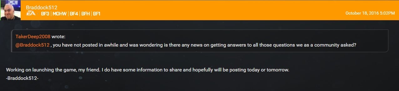 Mehr Klarheit dürfte einer der neuen Beiträge von Battlefield Community Manager Jeff Braddock bringen. Er kündigt im Battlefield Forum an, dass man diese Woche etwas über das “Rent a Server Programm” zu Battlefield 1 bekanntgeben will.