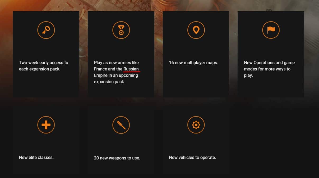 So werden im März 2017 zunächst die französischen Streitkräfte im Rahmen des Erweiterungspack “They Shall Not Pass” hinzugefügt und vermutlich mit einem weiteren der insgesamt vier geplanten Erweiterungspacks die russischen Streitkräfte. Das bestätigt eine neuer Beschreibungstext auf der offiziellen englischsprachigen Battlefield 1 Premium Webseite. Auf der deutschen Webseite ist von einem “Ostfront DLC” bisher nichts zu lesen. Trotzdem steht damit nun auch endlich offiziell fest, dass wir auch an der Ostfront mittels kostenpflichtigem DLC kämpfen werden. Einen Erscheinungstermin für das Russland Erweiterungspack gibt es bislang nicht.