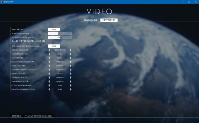 Mehr FPS, ein flüssigeres Spielerlebnis und die richtigen Einstellungen können auf dem Schalchtfeld eine Menge ausmachen. Youtuber C0rnyyy hat sich die Mühe gemacht und ein Video erstellt, in dem er auf Grafikeinstellungen, Gameplay, Auto- und Steuerungseinstellungen im inzwischen wirklich sehr umfangreichen Battlefield 1 Optionsmenü eingeht und diese ein wenig umschreibt.