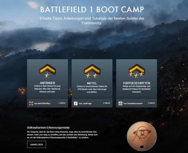 Neben der ganzen Tipps gibt es aber auch eine tolle Aktion, denn wer die Webseite besucht und etwas nach unten scrollt, kann sich die Onlinephantom-Erkennungsmarke/das Phantom DogTag sichern. Alles was ihr dafür machen müsst, ist eine Anmeldung auf der offiziellen Battlefield Webseite.