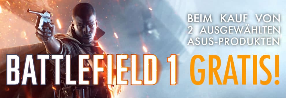 Neben Logitech hat auch ASUS eine spezielle Battlefield 1 Aktion gestartet. Auch, wenn man bei ASUS auf spezielle Battlefield 1 Produkte verzichten muss, gibt es trotzdem eine tolle Aktion. Wer nämlich 2 verschiedene Artikel aus einer großen Auswahl von Artikeln kauft, erhält einen Spielecode für die normale Version von Battlefield 1. Zur Auswahl stehen Gaming-, Headsets, Tastaturen, Mäuse und Mauspads. Wer sich beispielsweise ein Mauspad und eine Maus von ASUS zulegt und beim gleichen teilnehmenden Händler kauft, bekommt Battlefield 1 mit dazu.