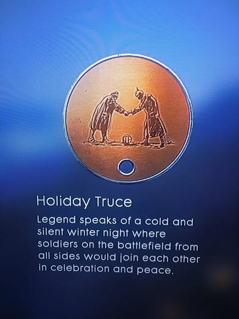 Das Dogtag- und Medaillen-Inventar von Battlefield 1 wurde um ein neues und besonders spannendes Objekt erweitert. Es handelt sich dabei um ein neues Dogtag, das nach dem großen Herbstpatch von Battlefield 1 im Ausrüstungsmenü unter dem Namen “Weihnachtsfrieden“-Erkennungsmarke zu finden ist. Der kurze Beschreibungstext unter dem Dogtag deutet auf die historischen Ereignisse an der Westfront in den Weihnachtstagen im Jahr 1914 hin. Damals legten zahlreiche Soldaten auf deutscher und britischer Seite ihre Waffen zur Ruhe und begrüßten die Gegner auf dem offenen Schlachtfeld.