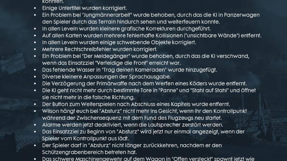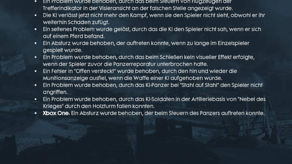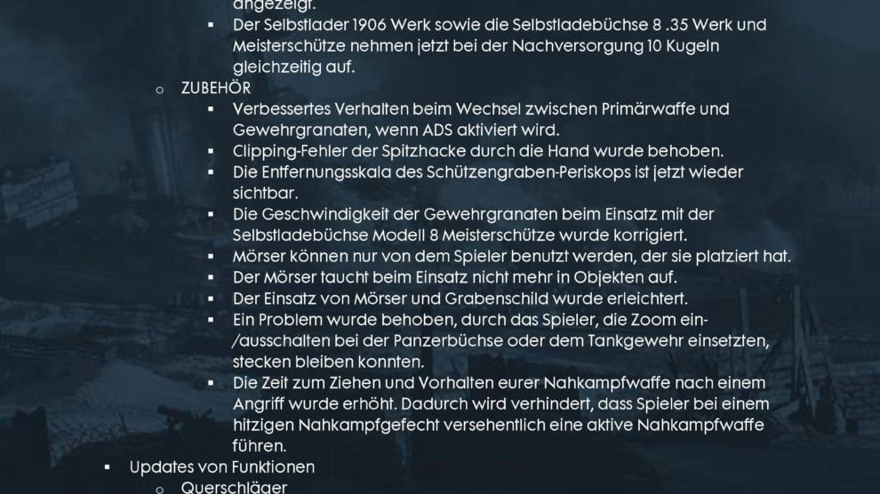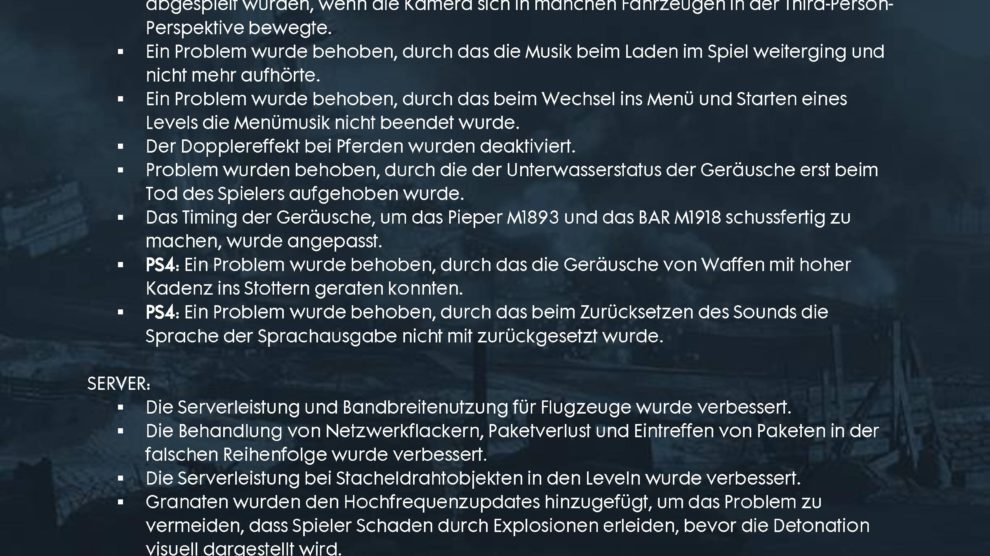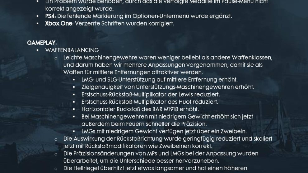 DICE hat alle Änderungen des Herbstupdates für Battlefield 1 in einem .pdf zusammengefasst, das 16 Seiten lang ist. Aus diesem Grund wollen wir an dieser Stelle auch nicht nochmal alles hier separat auflisten und verlinken euch der Einfachheit halber einfach die pdf. Datei.
