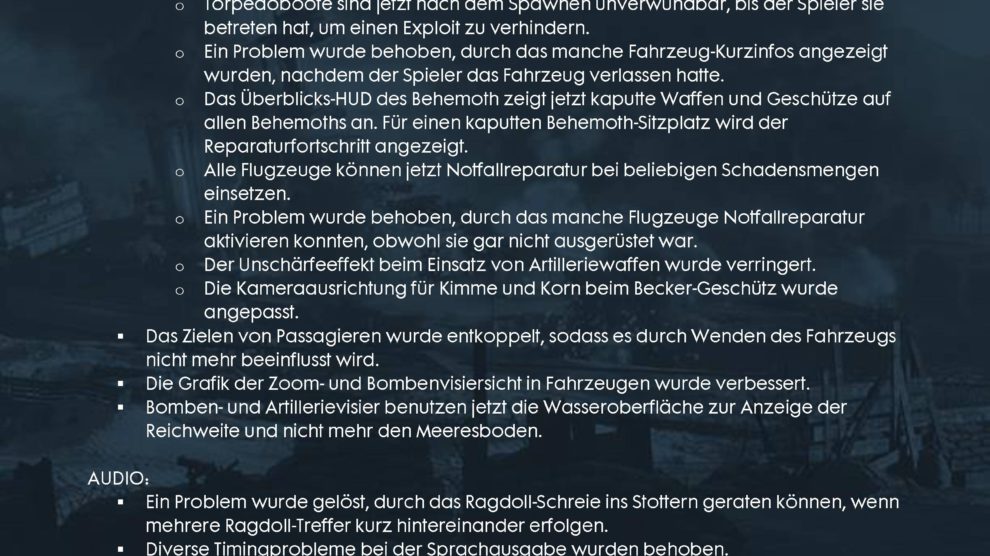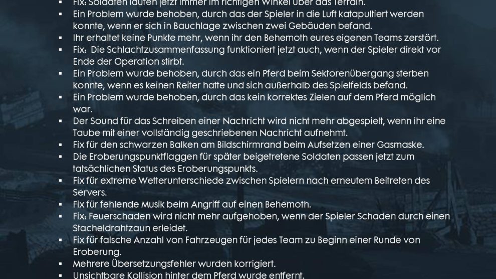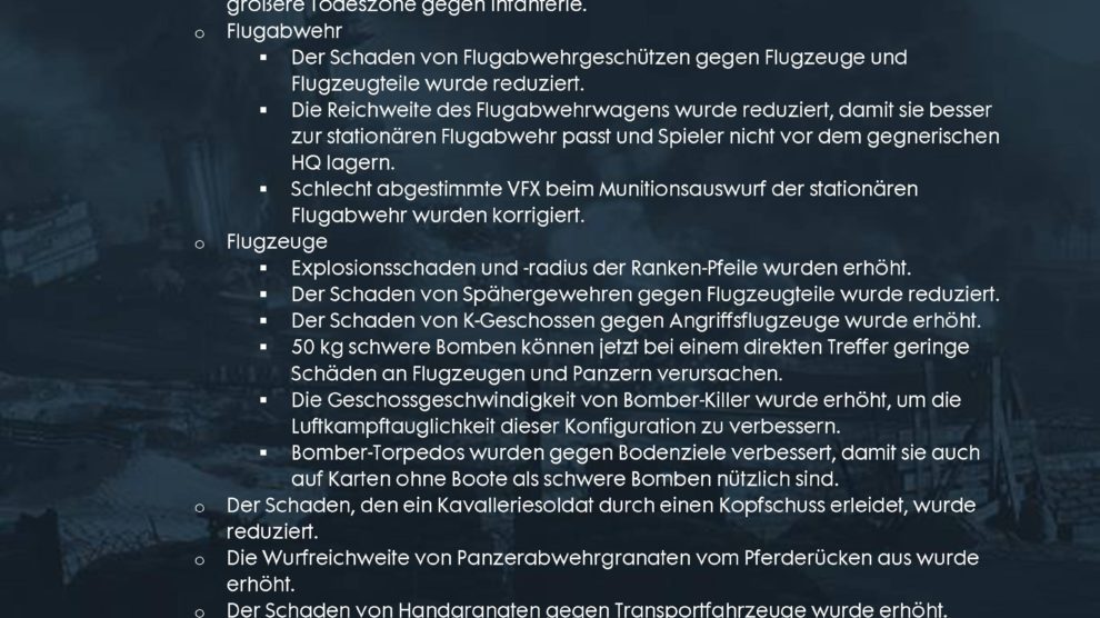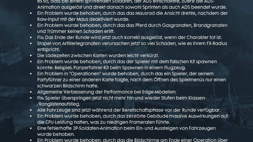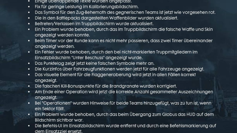 - Kerninhalte: Balancing-Änderungen für div. Klassen, Waffen, Fixes, Stabilitäts- und Performanceverbesserungen und mehr…