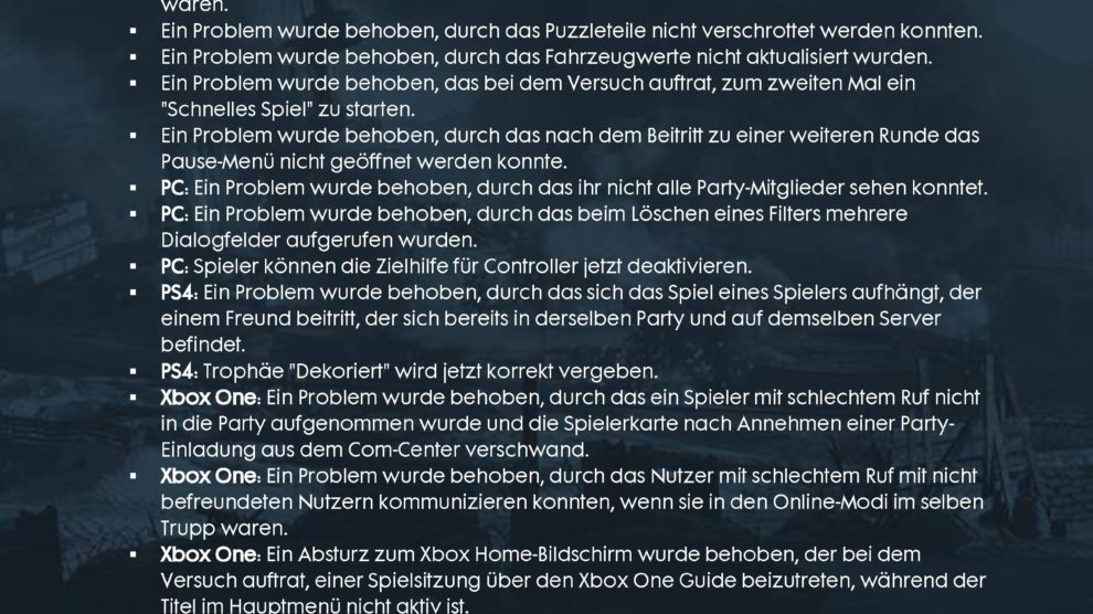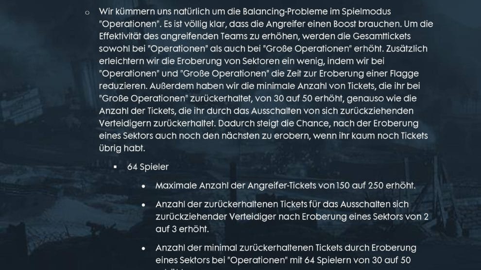 Dass der Patch groß ausfallen wird, wussten wir ja und DICE hat dieses oft genug erwähnt. Der Patch ist nun final auf allen Plattformen ausgerollt und bringt einige Verbesserungen und Änderungen mit sich. Auf dem PC ist das Update rund 1,6 GigaByte groß und auf den Konsolen müssen knapp 1,9 GigaByte heruntergeladen werden.