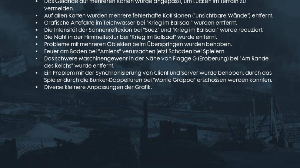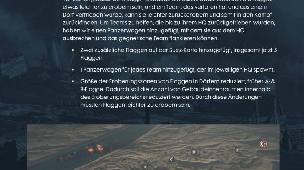- Map & Spielmodi Balancing-Änderungen: Map Suez und div. Operationen.
