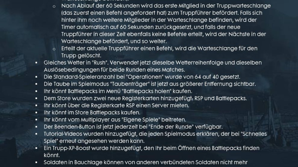 - Squads: Squadleader Demote System sowie weitere Squad Verbesserungen.