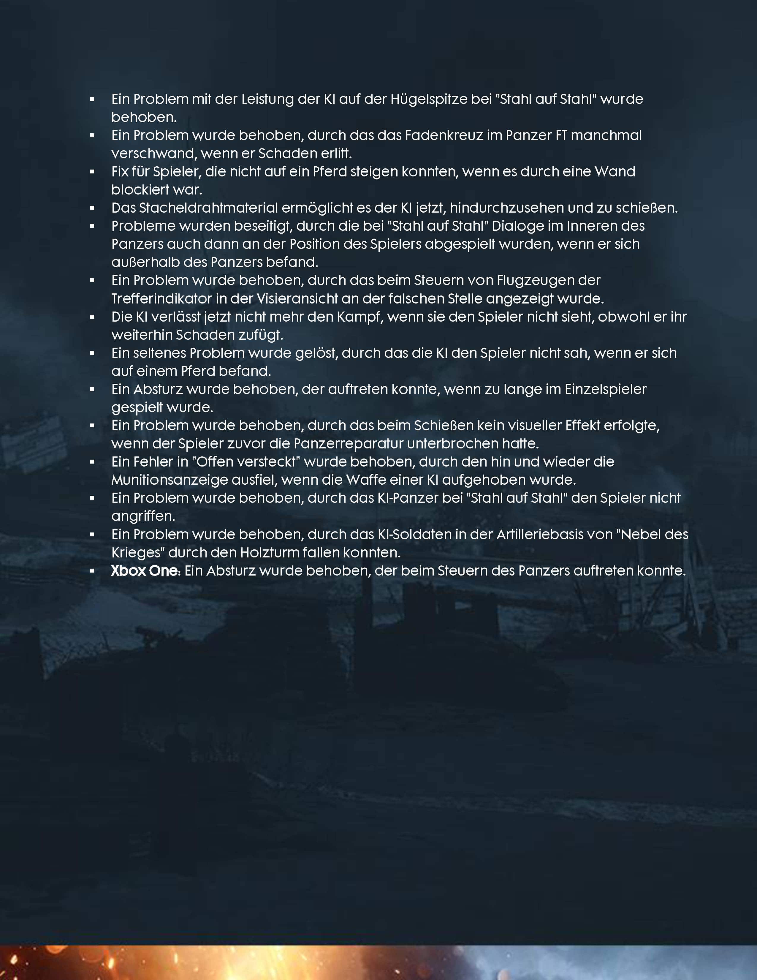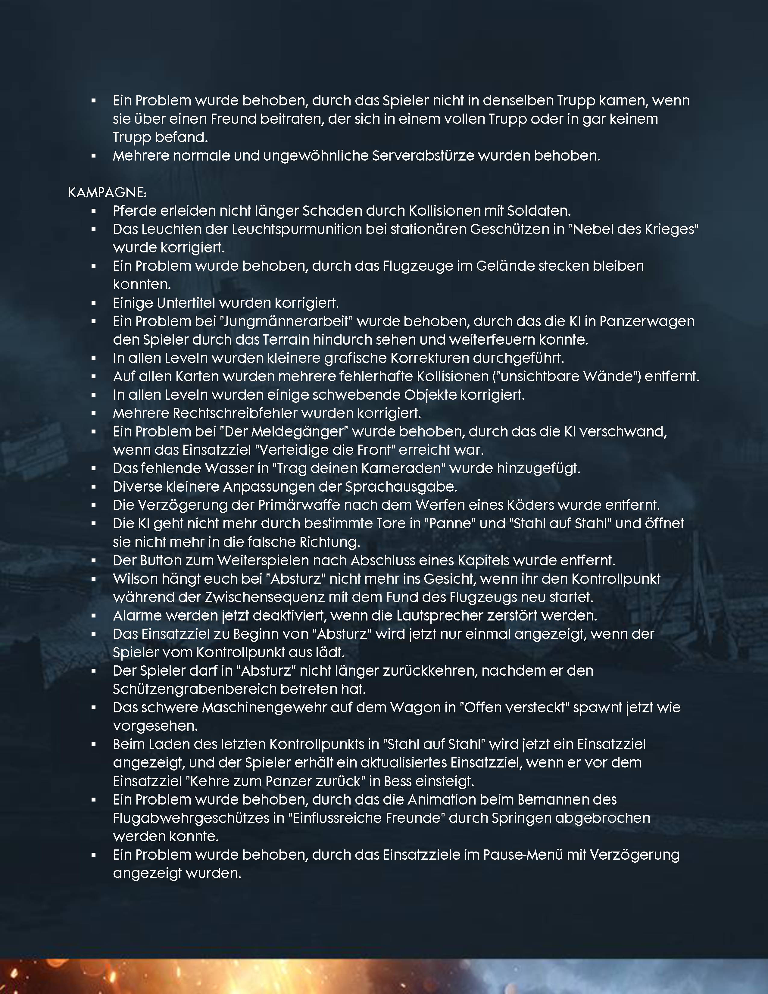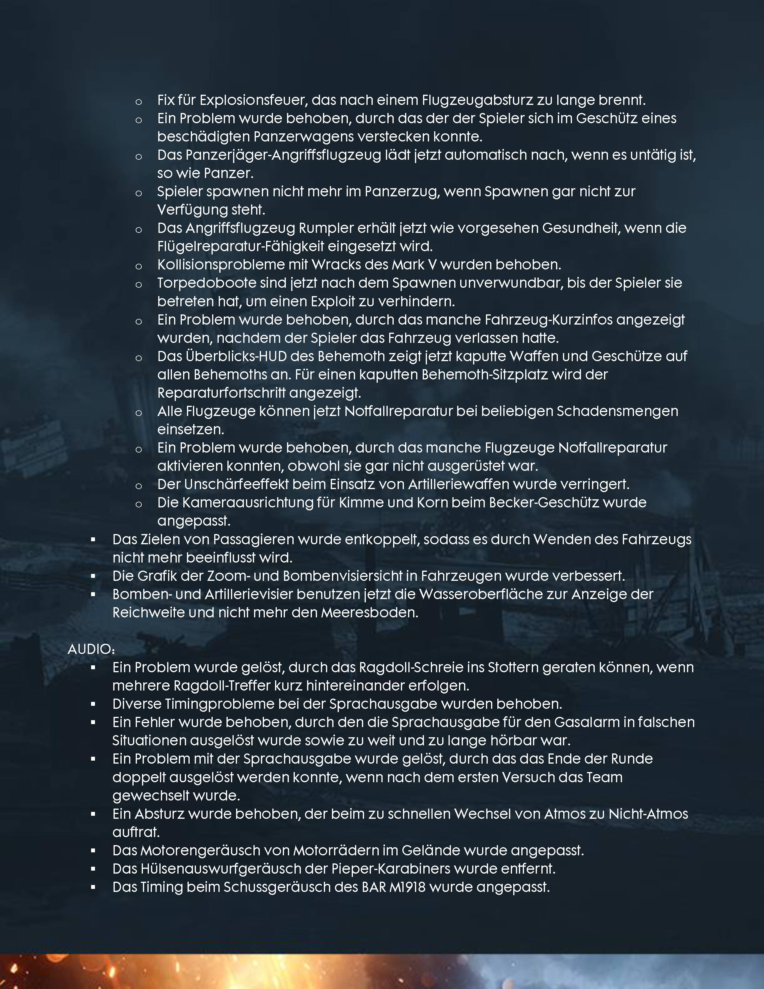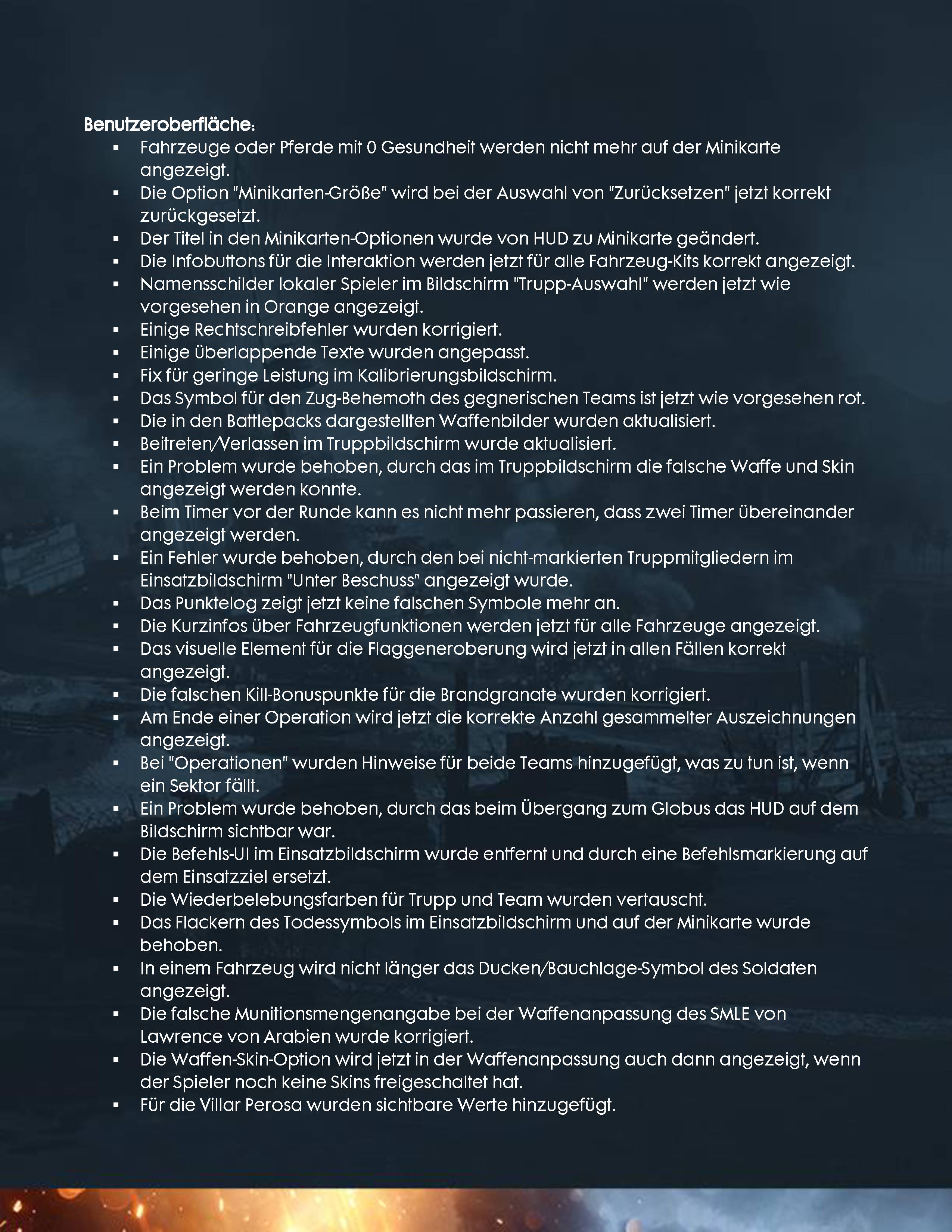DICE hat alle Änderungen des Herbstupdates für Battlefield 1 in einem .pdf zusammengefasst, das 16 Seiten lang ist. Aus diesem Grund wollen wir an dieser Stelle auch nicht nochmal alles hier separat auflisten und verlinken euch der Einfachheit halber einfach die pdf. Datei.