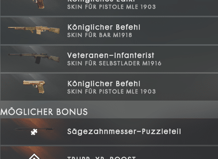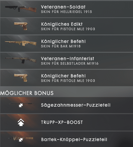 Zusätzlich besonders an dieser speziellen Revision ist, dass DICE die Wahrscheinlichkeit erhöht eines der seltenen Puzzleteile für die Nahkampfwaffen „Sägezahnmesser“ und „Bartek Knüppel“ zu erhalten. Damit aber nicht genug. DICE hat auch die Anzahl der Items insgesamt erhöht bzw. verdoppelt.