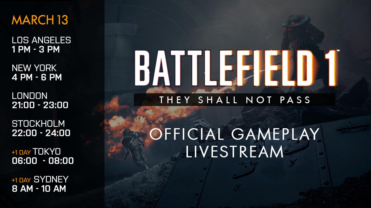 Im Rahmen der Veröffentlichung wird natürlich auch wieder die PR Maschinerie angeworfen und ein LIVE Stream übertragen, der die Erweiterung zeigen wird. Der Livestream wird am 13. März 2017 um 22:00 Uhr deutscher Zeit auf dem offiziellen Battlefield 1 Twitch Kanal übertragen.