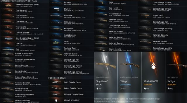 Zum Battlefest hat DICE wieder eine neue Spezial Revision der Battlefield 1 Battlepacks veröffentlicht. Die neue Revision hat die Nummer 25, in der insgesamt 44 neue Skins und drei Bonusitems enthalten sind. Von diesen 44 Skins sind 26 gewöhnlich, 10 höherwertig und 8 legendär. Auch dieses mal sind 5 der insgesamt 44 Skins Fahrzeugskins.
