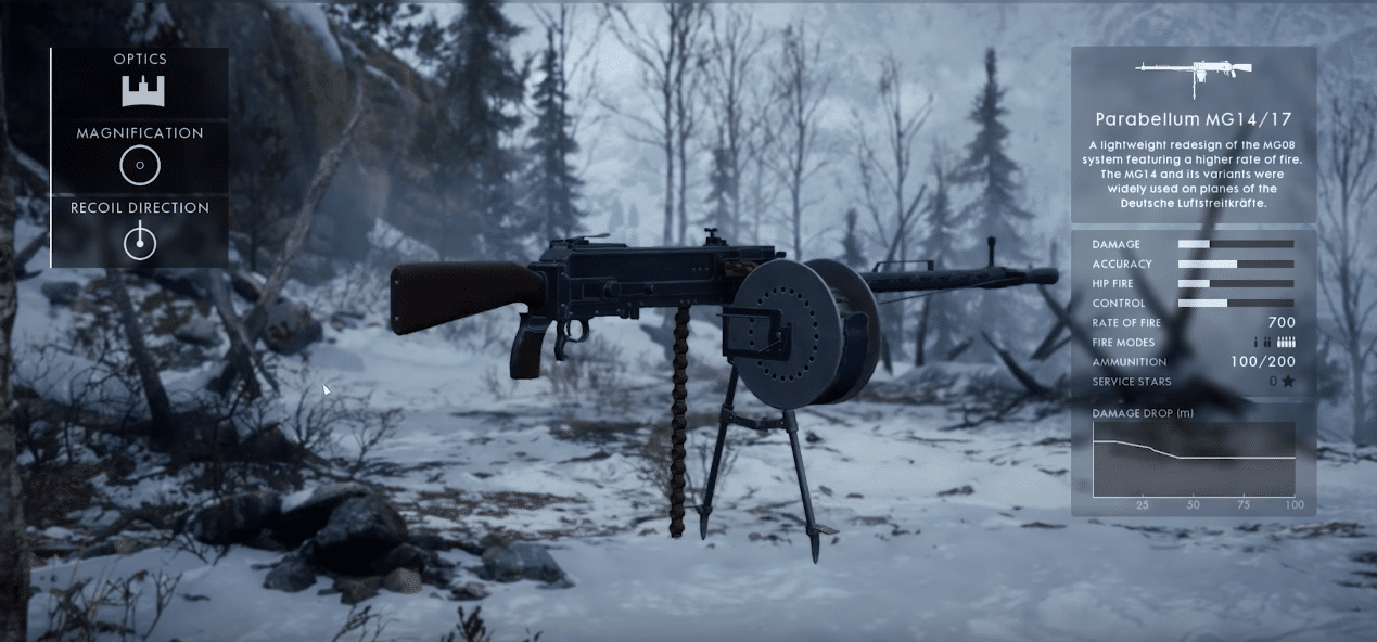 Parabellum MG14 / 17 – Das Parabellum MG14 / 17 ist spezifisch für die Support- Klasse und hat 100 Kugeln in jedem Magazin. Es gibt von diesem MG auch eine Unterdrückungsvariante.