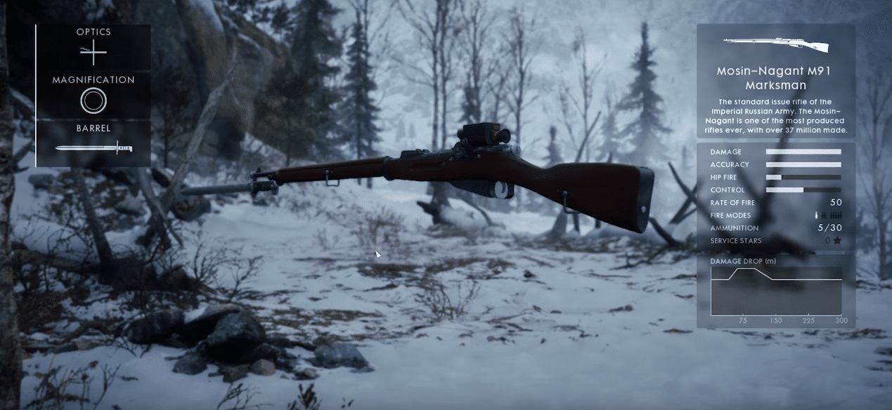 Mosin-Nagant M91 – Die Scout-Klasse wird den Mosin-Nagant M91 nutzen, mit zwei verschiedenen Varianten: Infanterie und Scharfschütze.