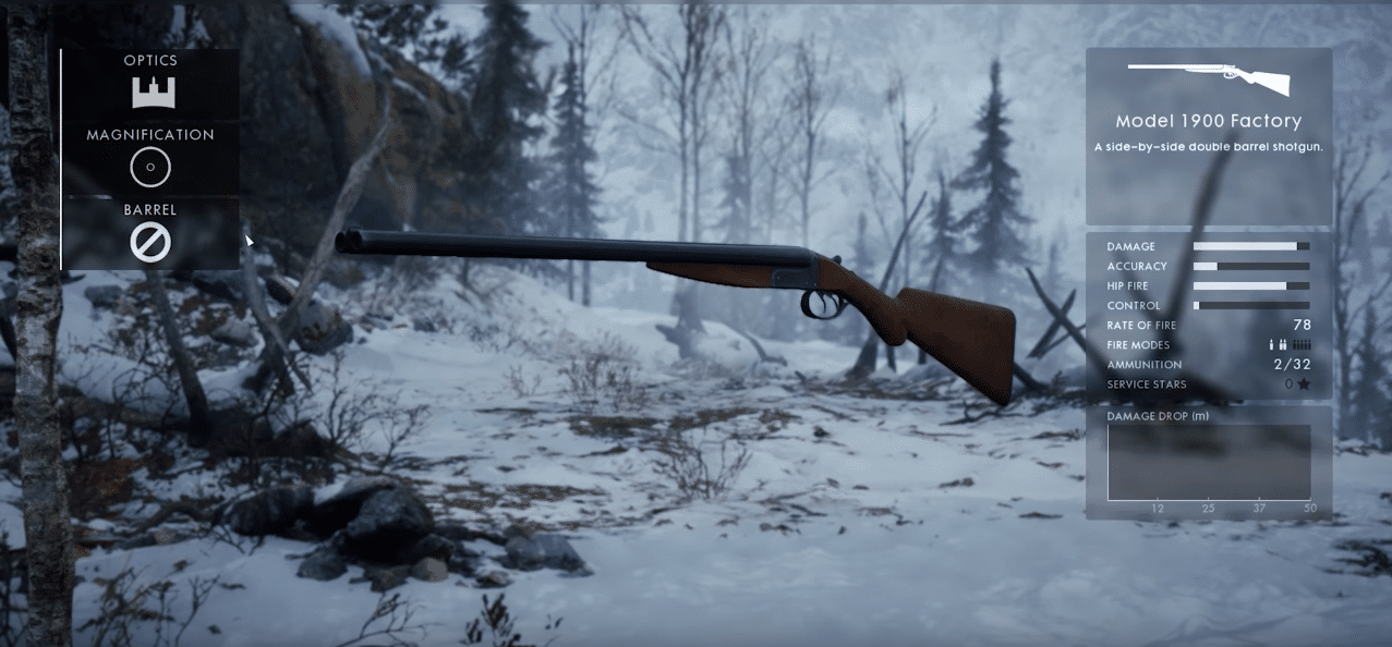 Modell 1900 – Das Modell 1900 ist eine Doppelfässer-Schrotflinte, die von der Assault-Klasse benutzt wird. Sie können zwischen Factory- und Slug-Optionen wählen.