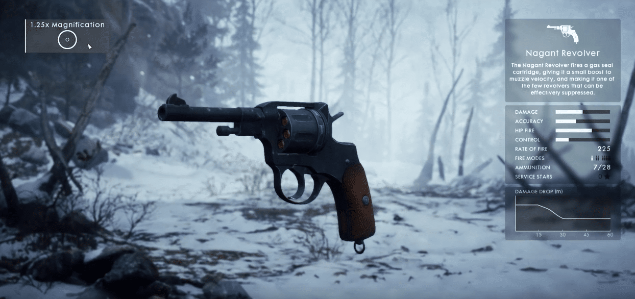 Nagant Revolver – Der Nagant Revolver ist als Sekundärwaffe verfügbar.