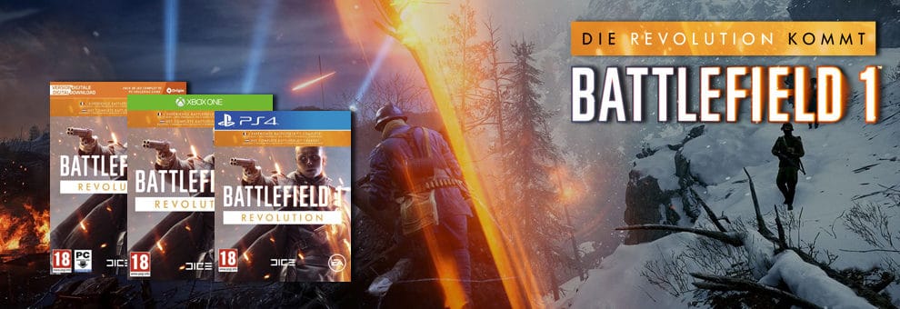 Die Battlefield 1 Revolution Edition soll das Basisspiel sowie den Premium Pass enthalten und für 59,99 Euro auf allen Plattformen angeboten werden. Entsprechend beinhaltet das Paket das Hauptspiel und die im Premium Pass enthaltenden Erweiterungen They Shall not Pass, In the Name of the Tsar, Turning Tides und Apocalypse sowie 14 Battlefield 1-Battlepacks und die Premium Events und Missionen.
